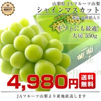 山梨県から産地直送 > JAフルーツ山梨 > 山梨県より産地直送 JAフルーツ山梨 シャインマスカット 秀品 大房1房入り 化粧箱 (約550g×1房) 送料無料 葡萄 ぶどう