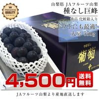 山梨県から産地直送 > JAフルーツ山梨 > 山梨県より産地直送 JAフルーツ山梨 種なし巨峰 秀品 大房1房入り化粧箱 (約550g×1房) 送料無料 葡萄 ぶどう
