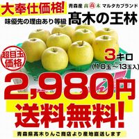 【家計応援価格!】青森県より産地直送 高木商店 マルタカブランド 高木の王林 味優先の理由あり 3キロ (10玉から13玉入) 送料無料 林檎 リンゴ おうりん 津軽