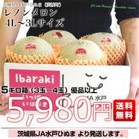 茨城県から産地直送 > JA水戸ひぬま > 茨城県より産地直送 JA水戸ひぬま レノンメロン(赤肉) 4Lから3L 5キロ箱(3玉から4玉) 送料無料 赤肉メロン