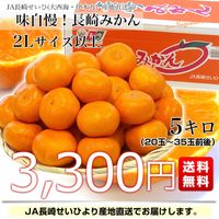 長崎県から産地直送 > JA長崎せいひ > 長崎県より産地直送 JA長崎せいひ 長崎みかん 2L以上の大玉 5キロ(20玉から35玉前後) 蜜柑 ミカン 送料無料 御歳暮 お歳暮