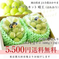 市場発送商品 > 岡山県産 シャインマスカット 晴王 青秀 約1.2キロ(600g×2房) 葡萄 ぶどう ブドウ 送料無料 クール便