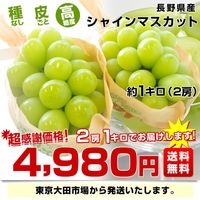 市場発送商品 > 長野県産 シャインマスカット 約1キロ(2房)送料無料 ぶどう ブドウ 種なしぶどう