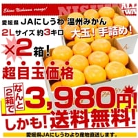 愛媛県から産地直送 > JAにしうわ > 愛媛県より産地直送 JAにしうわ 西宇和温州みかん 2Lサイズ 約3キロ×2箱 送料無料 みかん ミカン 蜜柑