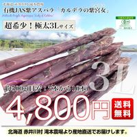北海道から産地直送 > 滝本農場 > 北海道より産地直送 赤井川村滝本農場の有機JAS 紫アスパラ「 カルデラの紫宮女」 3Lサイズ 約500g入り 送料無料 アスパラガス ※クール便発送