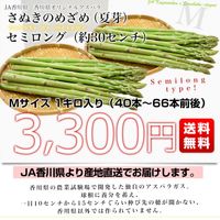 香川県から産地直送 > JA香川県 > アスパラ > 香川県より産地直送 JA香川県アスパラ さぬきのめざめ 夏芽 セミロング(約30センチ)Mサイズ 1キロ入り 送料無料 丸亀市他 30センチアスパラガス