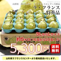 山形より産地直送 ラ・フランスセンター共撰品 ラ・フランス 特秀品 約5キロ(16玉から20玉入り) 3LからLサイズ 送料無料 洋なし 洋梨