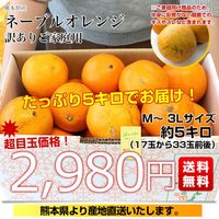 熊本県から産地直送 > 熊本県から産地直送 熊本県産 訳ありご家庭用 ネーブルオレンジ Mから3L 約5キロ(17玉から33玉前後)送料無料 柑橘 かんきつ