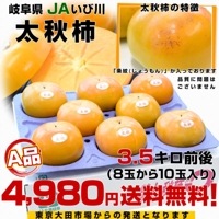 市場発送商品 > 岐阜県 JAいび川 太秋柿(たいしゅうかき) A品3.5キロ前後(8玉から10玉入り) 送料無料 大玉柿 柿 かき 市場発送