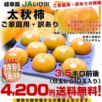 岐阜県 JAいび川 ご家庭用訳あり 太秋柿(たいしゅうかき) 3.5キロ前後(8玉から10玉入り) 送料無料 大玉柿 柿 かき 市場発送