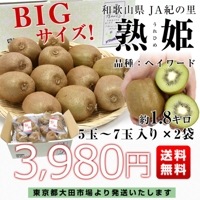 和歌山県産 JA紀の里 熟姫(うれひめ) 約1.8キロ(5玉から7玉入り×2袋) 送料無料 キウイフルーツ グリーンキウイ ヘイワード 市場発送