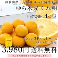 市場発送商品 > 和歌山県産 JA紀州 ゆら選果場 ゆらはっさく 木成り八朔 上級等級:4つ星 2LからLサイズ 約3キロ (9玉から12玉) 送料無料 由良はっさく ゆら八朔 市場発送