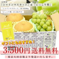 市場発送商品 > 長野県 「シャインマスカット」 1房(約500g)&栃木県 「にっこり梨」 2玉(約1キロ) セット 送料無料 ぶどう なし クール便