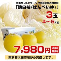 熊本産JAやつしろ 晩白柚 大玉 3玉入り 4キロから5キロ 送料無料 ばんぺいゆ 市場発送 柑橘 八代