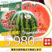 秋田県産JAうご 大玉スイカ 夢あきた A品 5Lサイズ 10キロ以上(1玉入り) 送料無料 西瓜 すいか