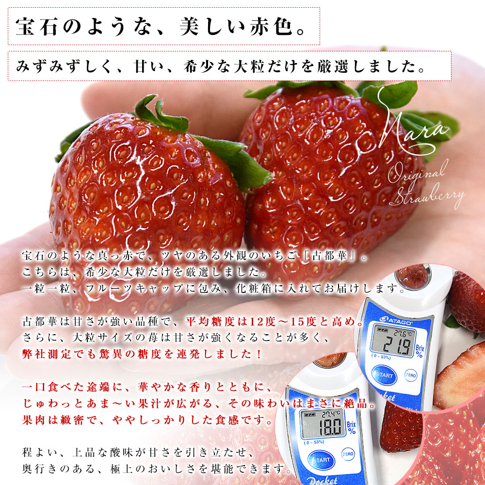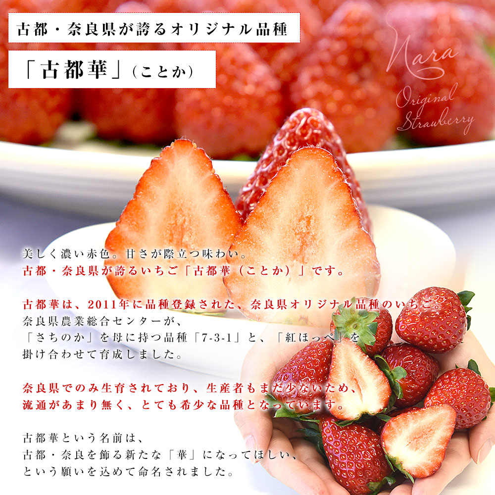 市場発送商品 > 奈良県 古都華カンパニー 古都華(ことか) 化粧箱 約550g (11粒から15粒前後) 送料無料 いちご 苺 奈良いちご