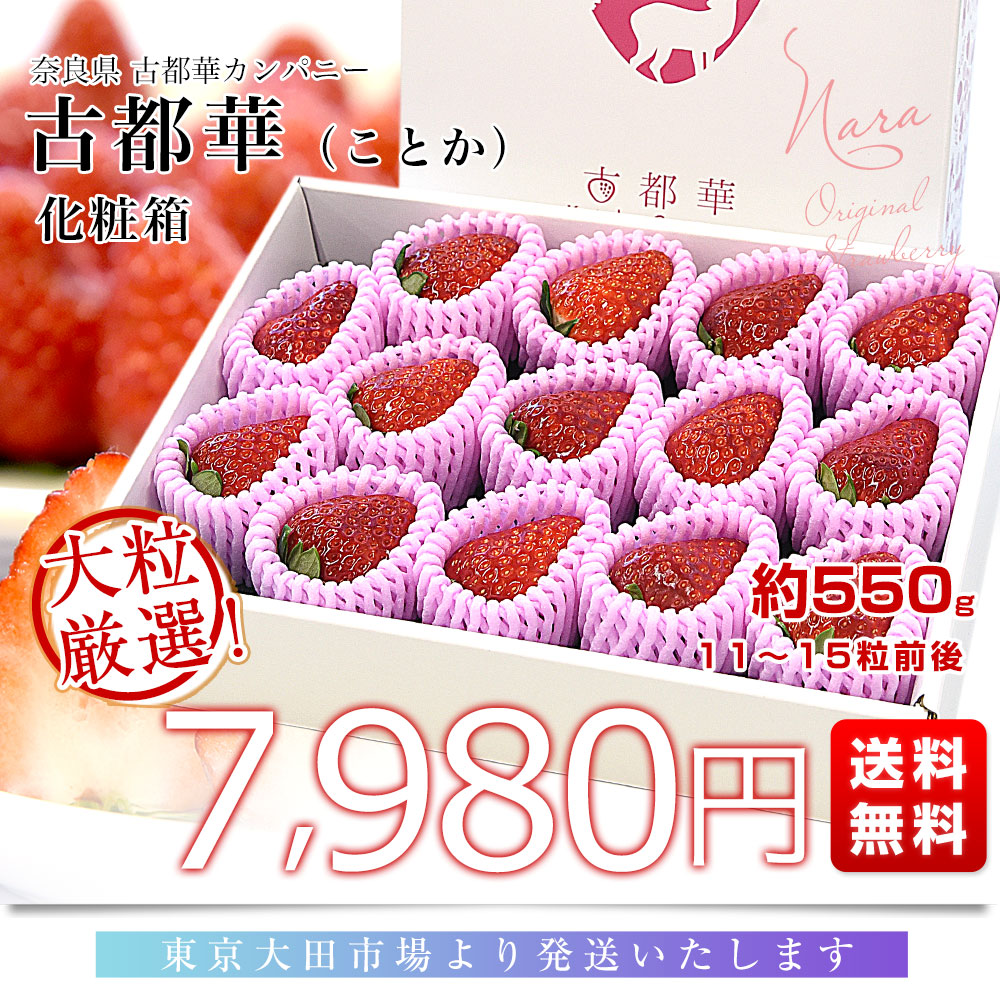 奈良県 古都華カンパニー 古都華(ことか) 化粧箱 約550g (11粒から15粒前後) 送料無料 いちご 苺 奈良いちご