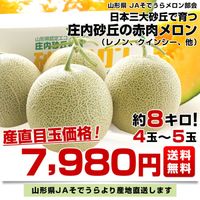 山形県より産地直送 JAそでうら 庄内砂丘の赤肉メロン 大玉サイズ 4玉から5玉 約8キロ 送料無料 メロン めろん