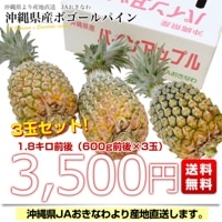 沖縄県から産地直送 > JA沖縄 > 沖縄県より産地直送 JAおきなわ 沖縄県産 ボゴールパイン 3玉セット 合計1.8キロ前後 (600g×3玉) 送料無料 沖縄パイン パイナップル パインアップル いしがきじま