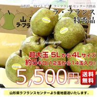 山形県から産地直送 > 山形より産地直送 ラ・フランスセンター共撰品 ラ・フランス 特秀品 約5キロ(12玉から14玉入り) 4Lから5Lサイズ 送料無料 大玉 洋なし 洋梨