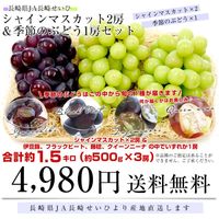 長崎県から産地直送 > 長崎県より産地直送 大型ぶどう 2種3房セット(シャインマスカット2房&季節のぶどう1房)葡萄 ぶどう 送料無料