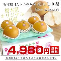 栃木県より産地直送 JAうつのみや 栃木県オリジナル品種 にっこり梨 5キロ (5玉から6玉) 送料無料 山口果樹園・島田梨園他 なし 梨 ナシ